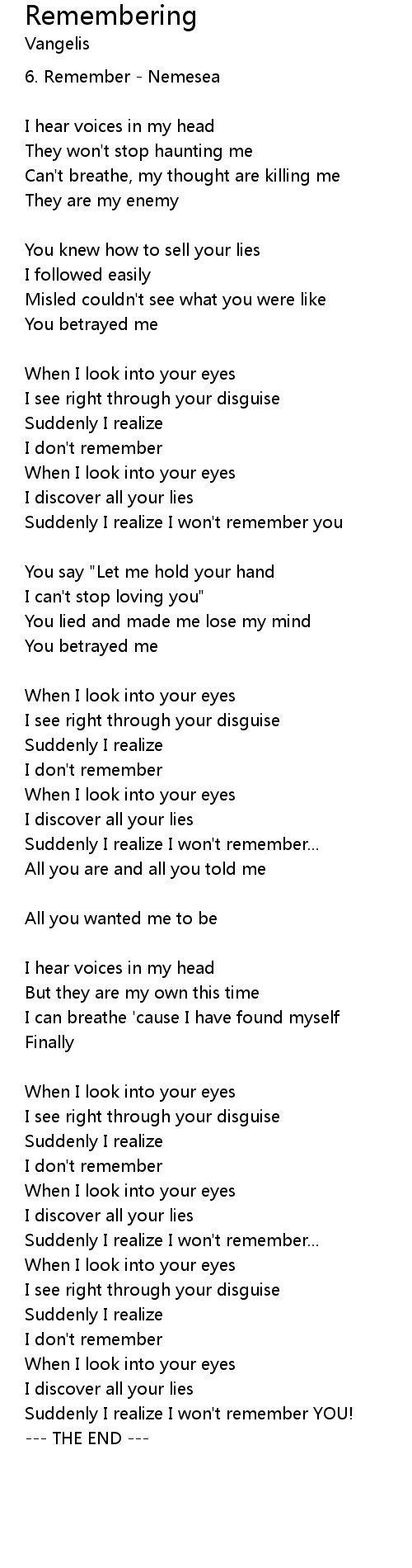 Remembering 歌词