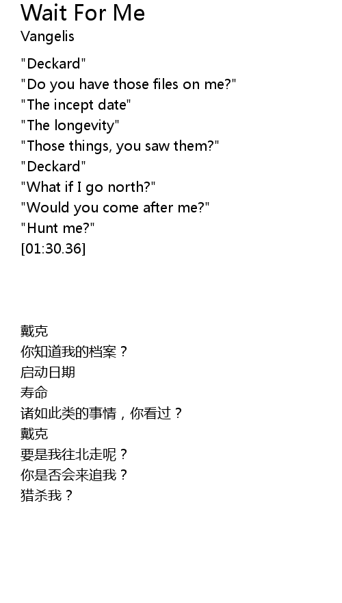 | 歌曲 | Wait For Me |