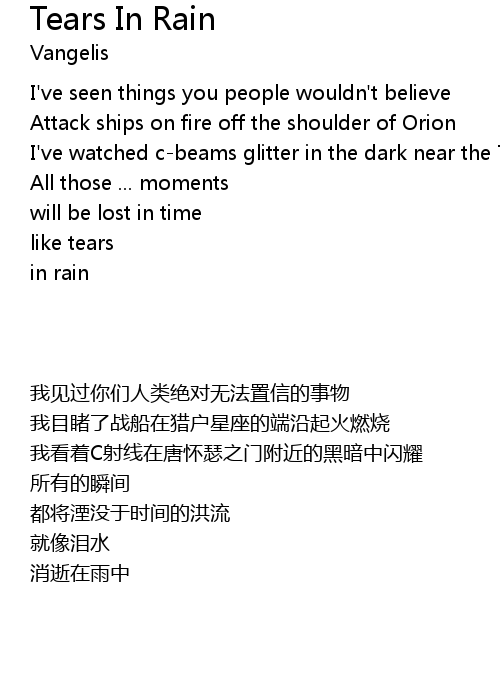 | [00:21.66] | I've watched c-beams glitter in the dark near the Tannhauser Gate |
