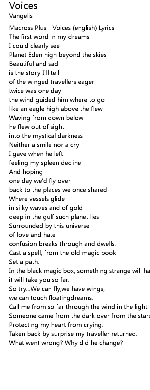 | [00:00.00] | Macross Plus - Voices (english) Lyrics |