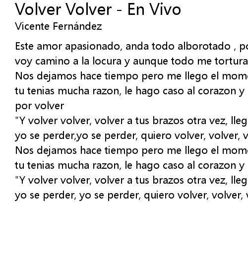 "Y volver volver, volver a tus brazos otra vez, llegare hasta donde estes |