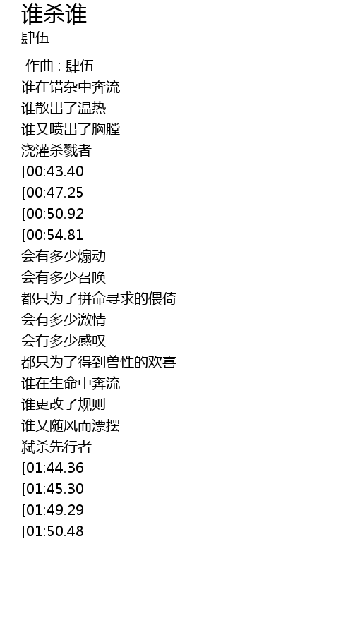| [01:59.50][01:49.29] | 谁杀谁 |