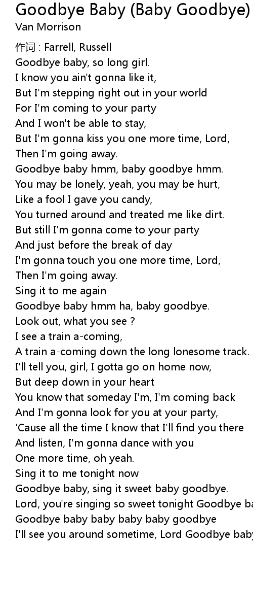 | Goodbye baby hmm, baby goodbye hmm. | |