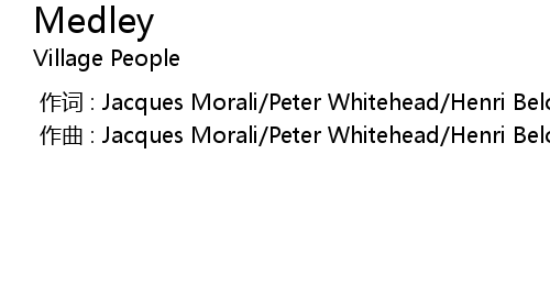 | [00:00.000] | zuò qǔ : Jacques Morali Peter Whitehead Henri Belolo Phil Hurtt |