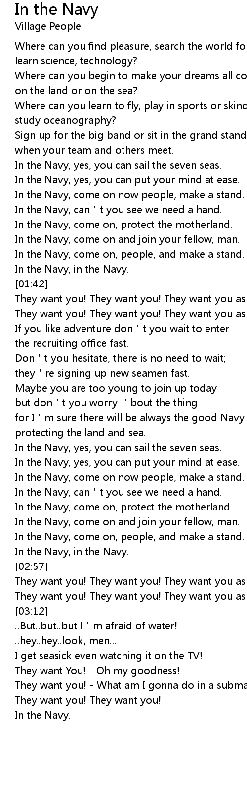 | [02:34] | In the Navy, come on now people, make a stand. |