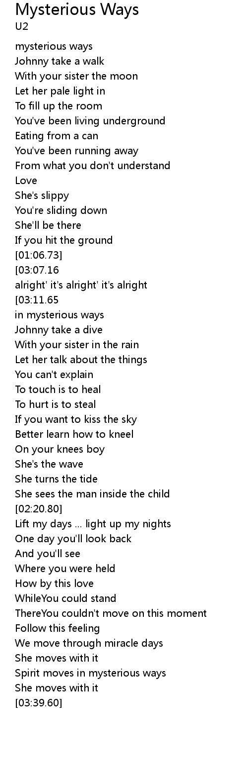 [03:22.26][03:11.65][03:02.87][01:56.48][01:48.33][01:02.69][00:52.87] She moves in mysterious ways