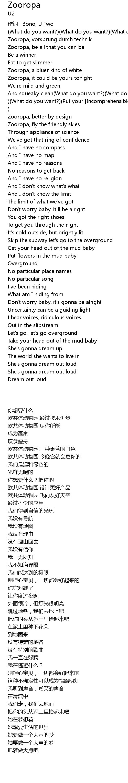 | zuò cí : Bono, U Two | |