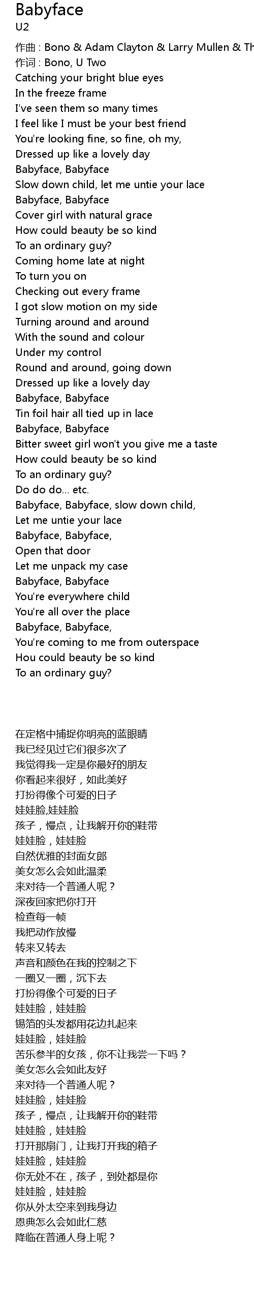 | 作曲 : Bono & Adam Clayton & Larry Mullen & The Edge | |
