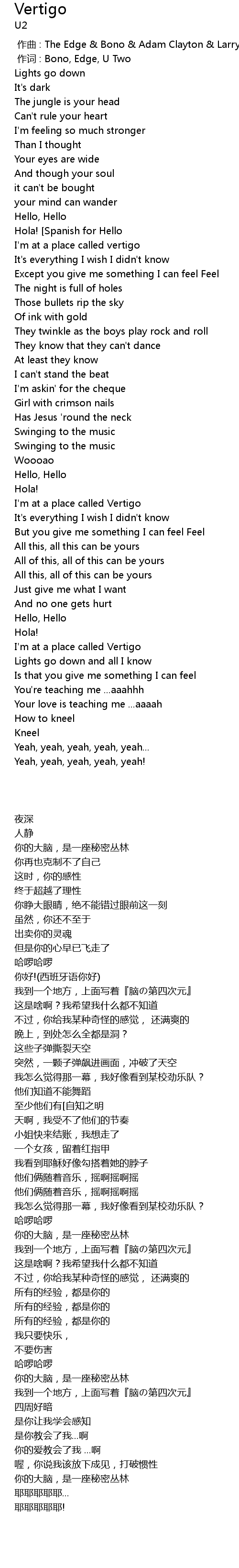 | [00:00.00] | 作曲 : The Edge & Bono & Adam Clayton & Larry Mullen |