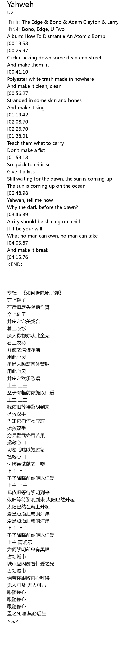 | [00:00.00] | 作曲 : The Edge & Bono & Adam Clayton & Larry Mullen |