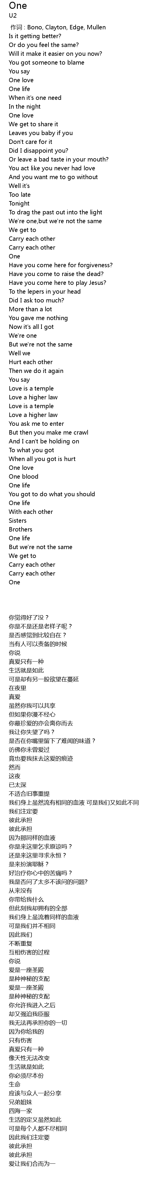 | [00:00.00] | 作词 : Bono, Clayton, Edge, Mullen |