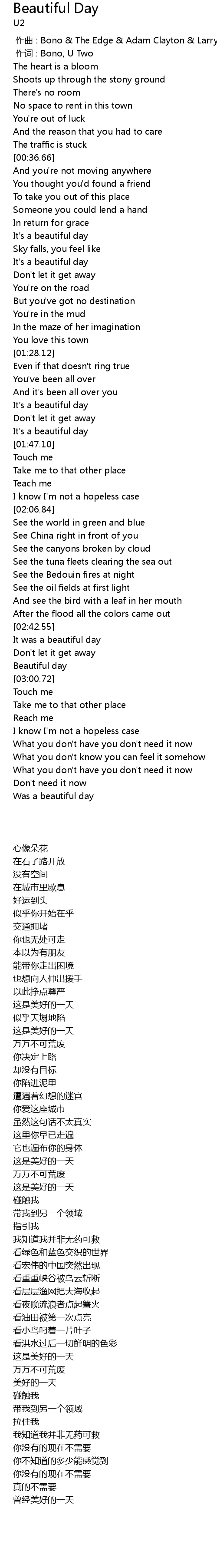 | [00:00.00] | zuò qǔ : Bono The Edge Adam Clayton Larry Mullen |