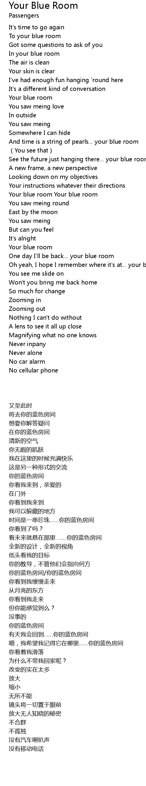 | 歌曲 | Your Blue Room |