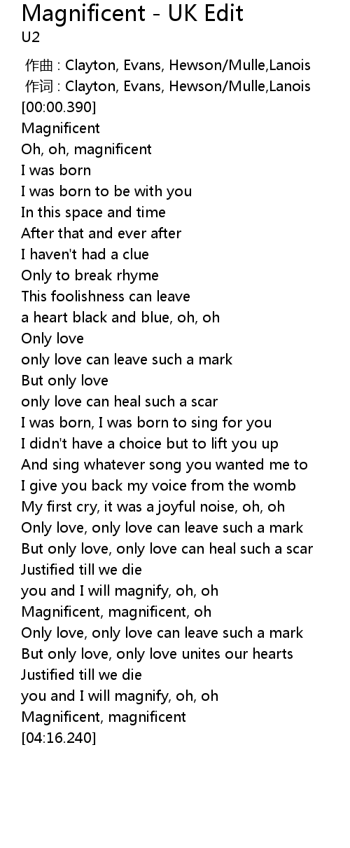 | 歌曲 | Magnificent - UK Edit |