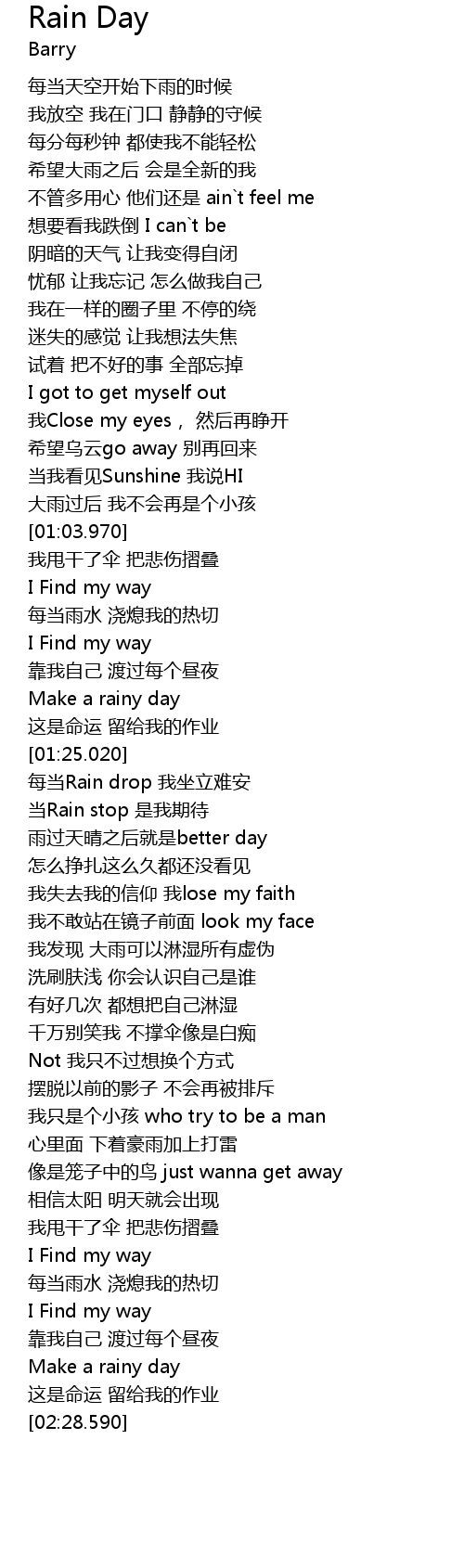 | [02:23.520] | Make a rainy day |