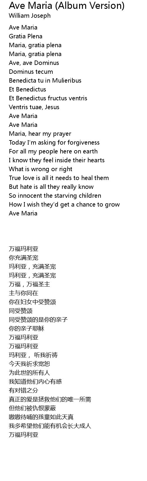 Ave Maria (Album Version) 歌词