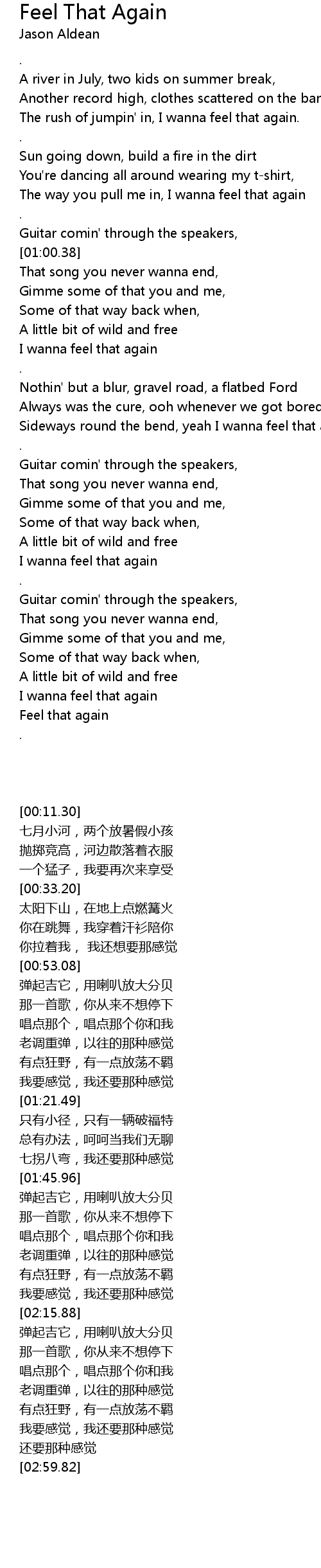 I wanna feel that again |
