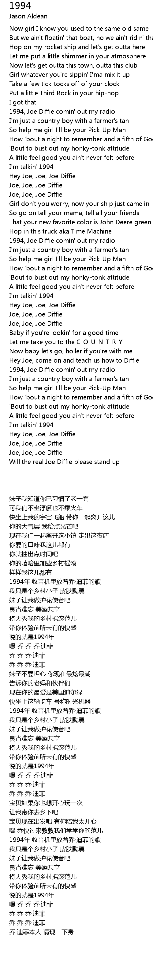 1994, Joe Diffie comin' out my radio |