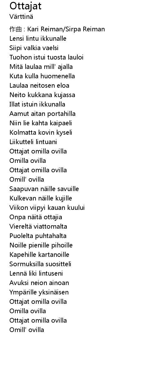 | 作曲 : Kari Reiman/Sirpa Reiman | |