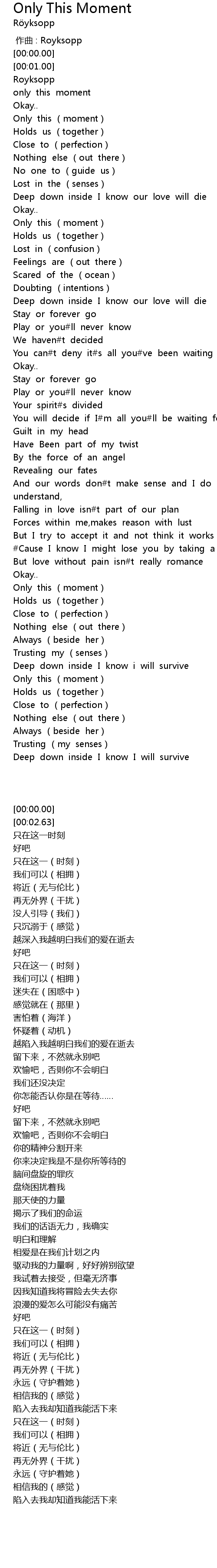 | [00:31.43] | Only this moment |