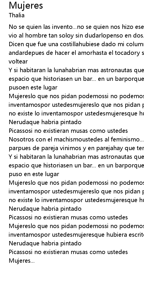 Mujereslo que nos pidan podemossi no podemos no existey si no existe lo inventamospor ustedesmujeresque hubiera escrito |