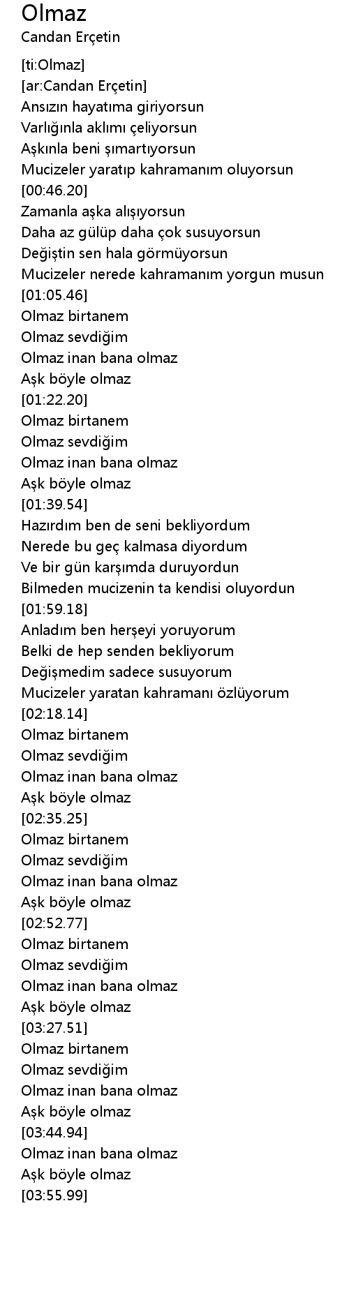 | [00:55.30] | De i tin sen hala g rmü yorsun |