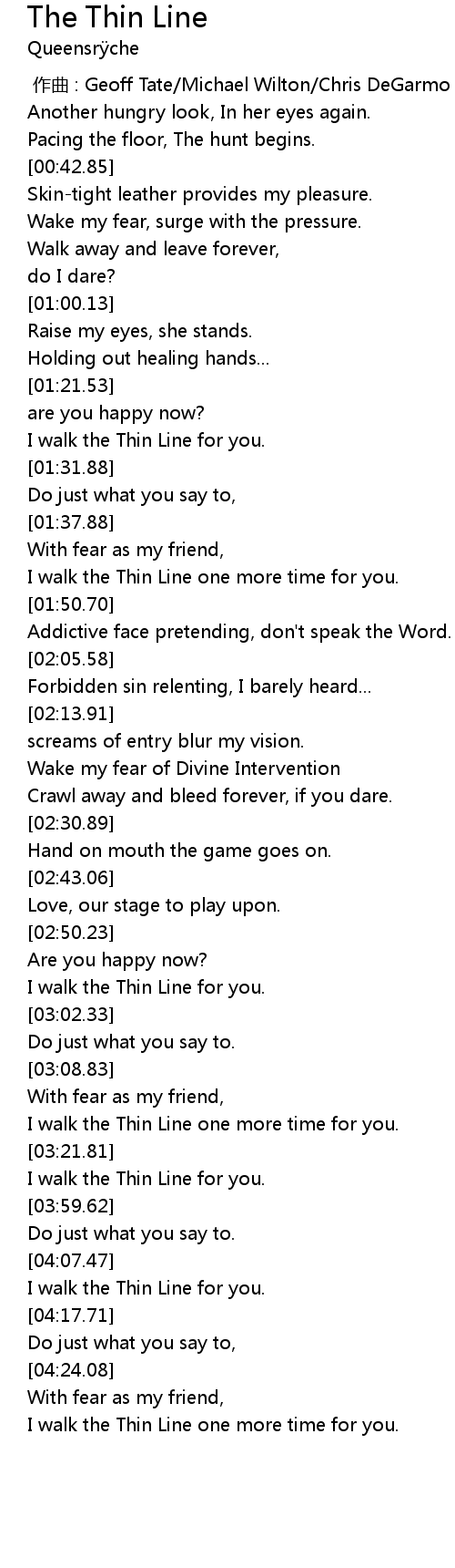 | [04:29.68] | I walk the Thin Line one more time for you. |