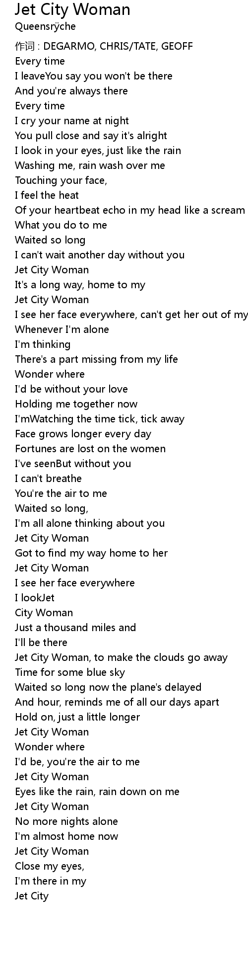 | 歌曲 | Jet City Woman |