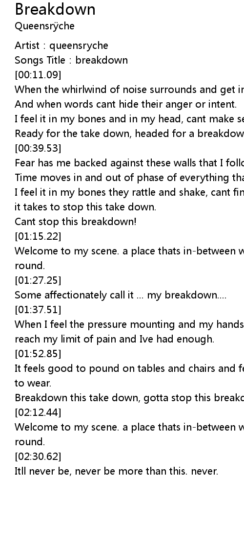 | [01:06.44] | Cant stop this breakdown! |