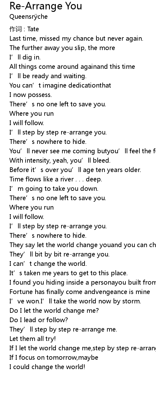 | If I let the world change me,step by step re-arrange me. | |