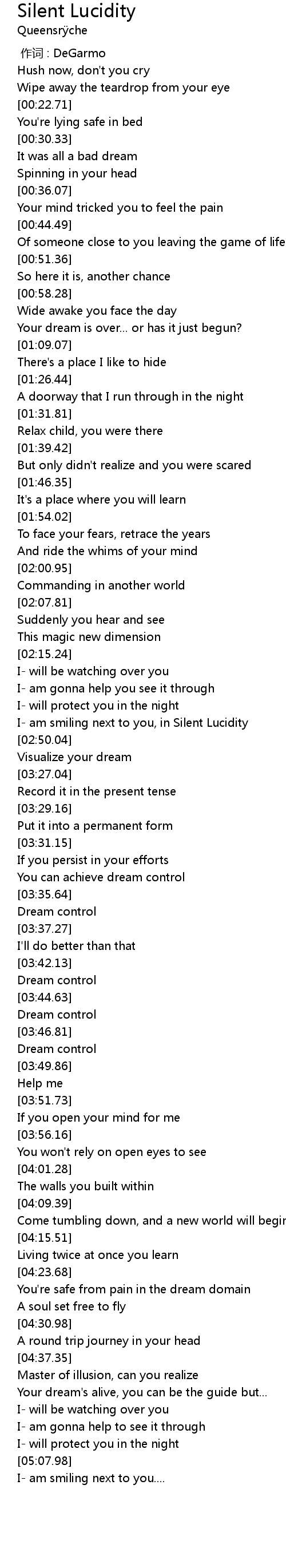 | [02:37.95] | I am smiling next to you, in Silent Lucidity |