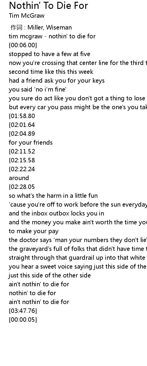 | [00:04.00] | tim mcgraw nothin' to die for |