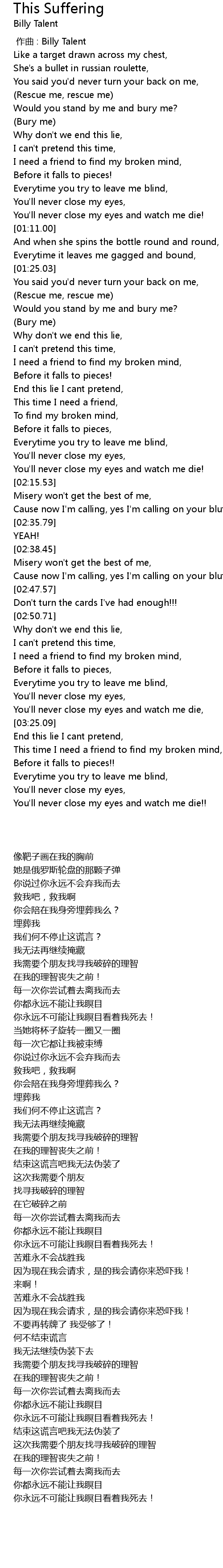 | [00:00.00] | 作曲 : Billy Talent |