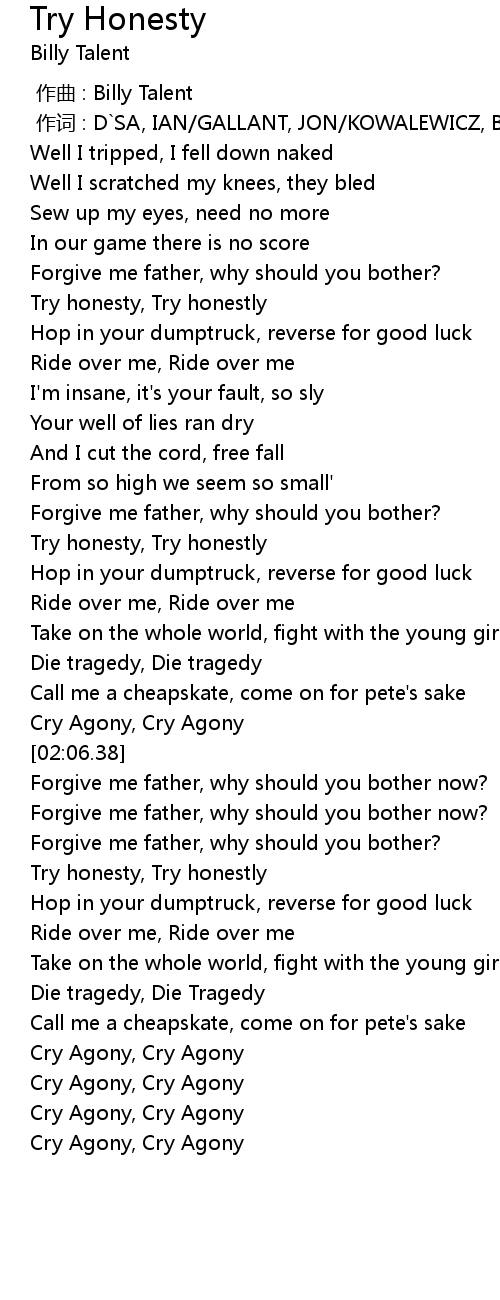 | [03:18.14] | Try honesty, Try honestly |