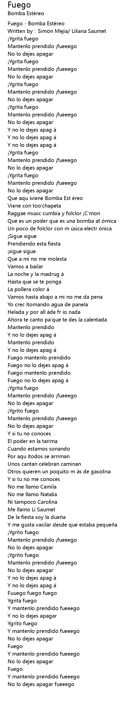| [00:00.10] | Fuego - Bomba Estéreo |