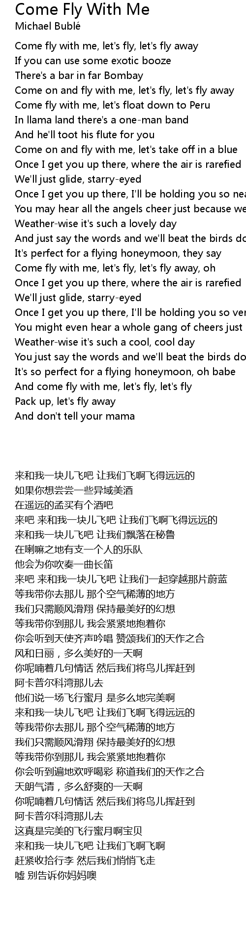 Come fly with me, let's fly, let's fly away |
