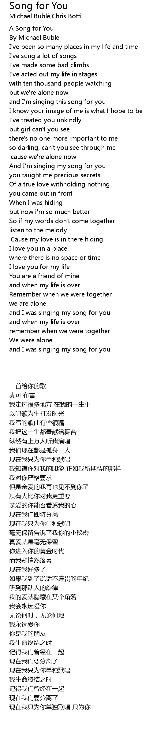and I'm singing this song for you |