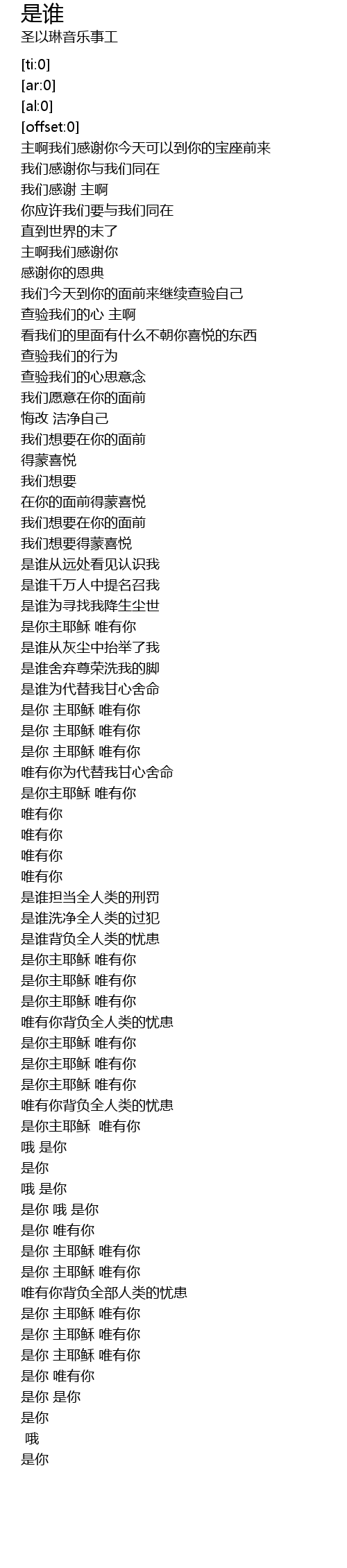 | [03:54.34] | 是你主耶稣 唯有你 |