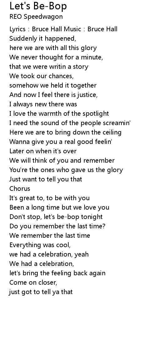 | Don't stop, let's be-bop tonight | |