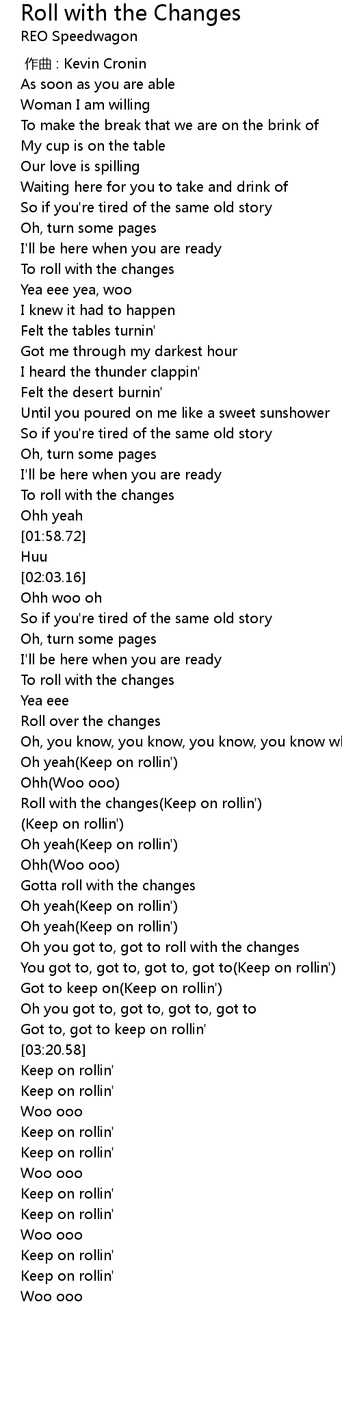 | [02:45.69] | Roll with the changes(Keep on rollin') |