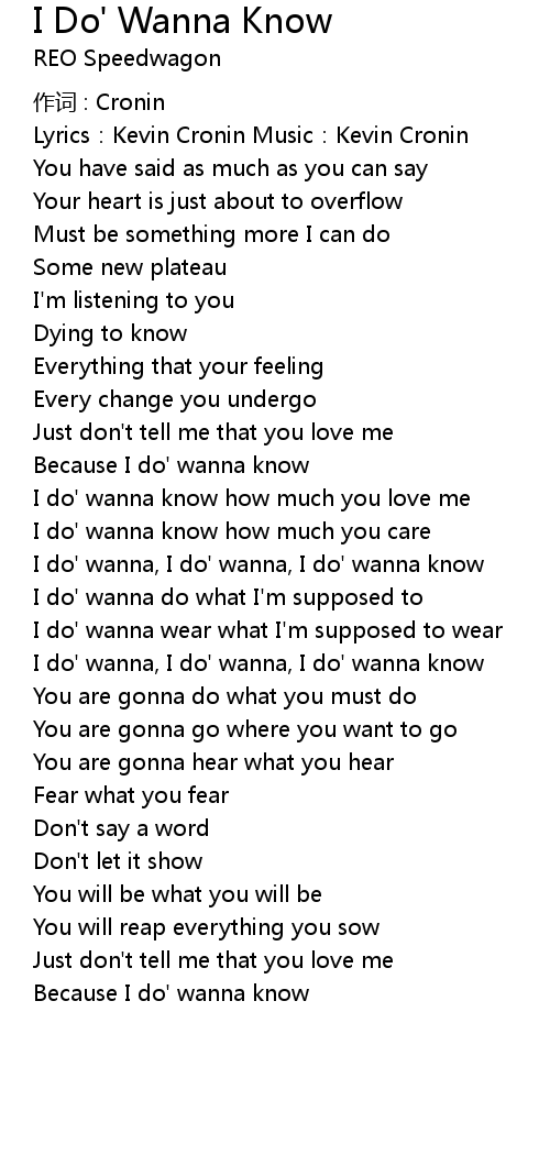 | I do' wanna, I do' wanna, I do' wanna know | |
