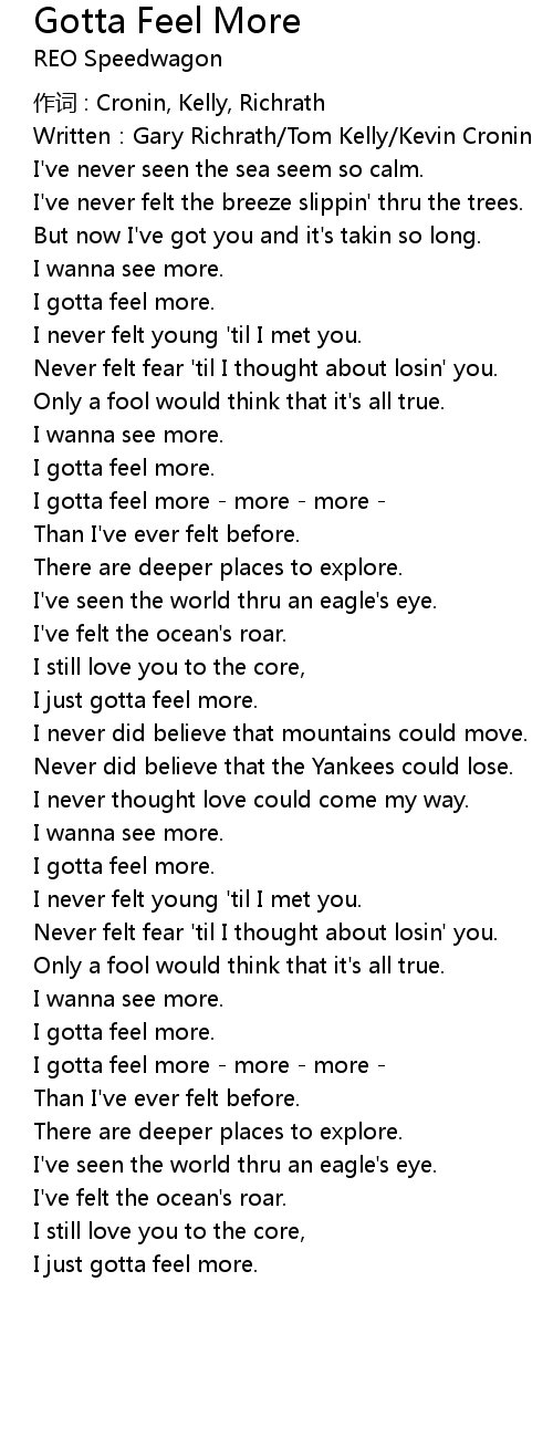 | I gotta feel more more more | |