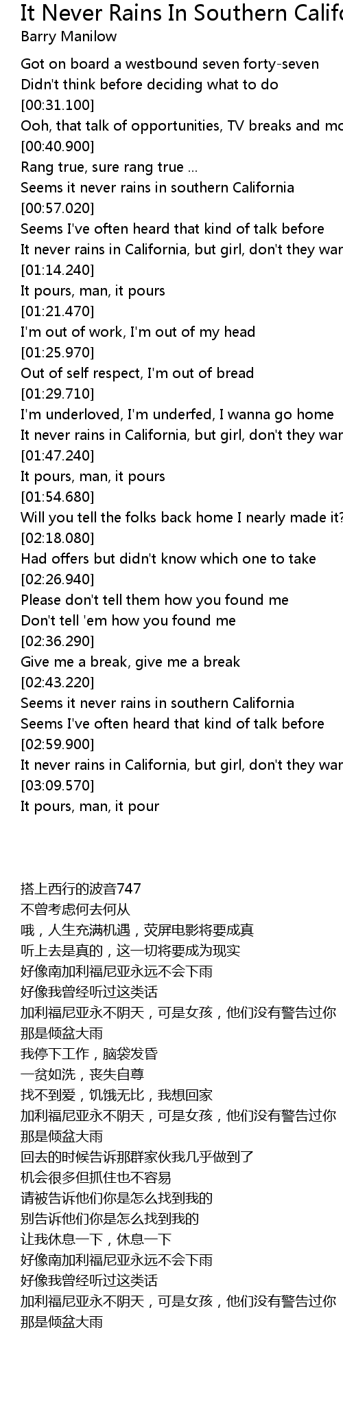 It never rains in California, but girl, don't they warn ya? |
