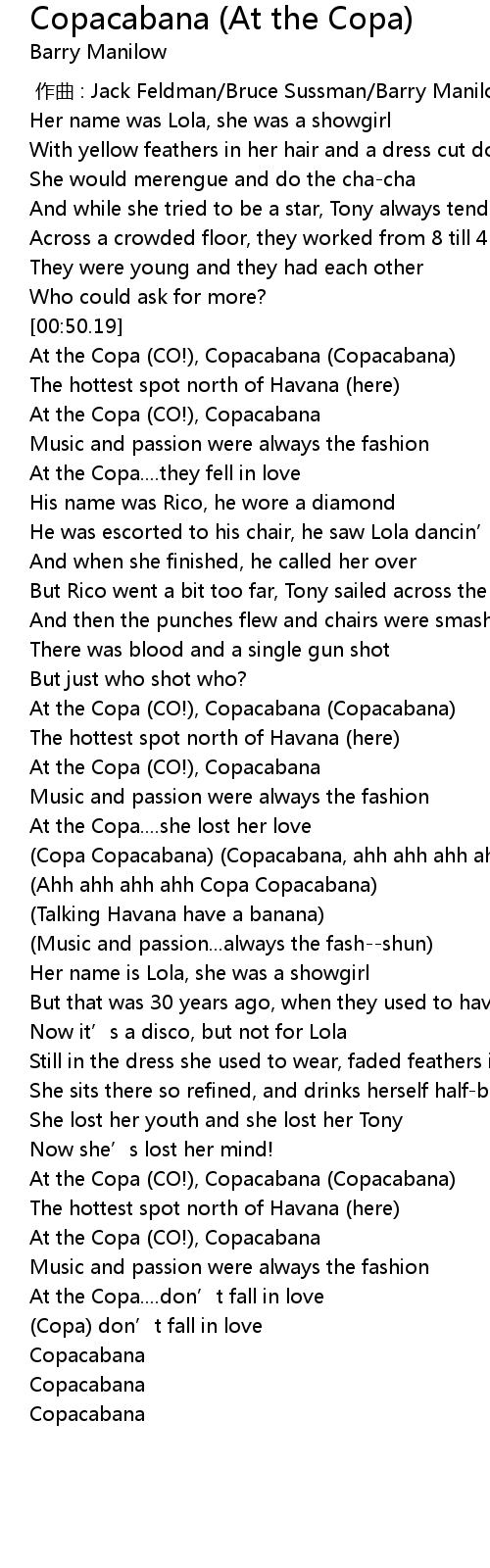 | [00:50.78] | At the Copa CO!, Copacabana Copacabana |