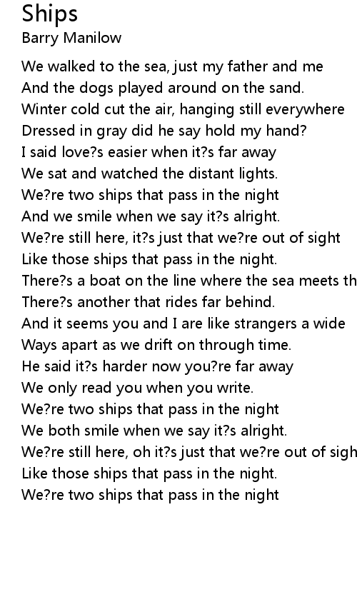Like those ships that pass in the night. |