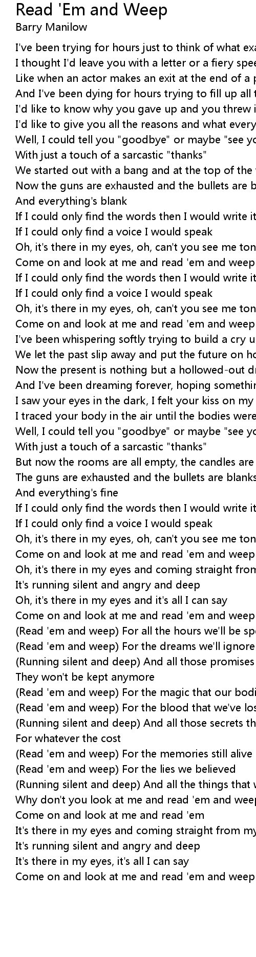 Why don't you look at me and read 'em and weep |