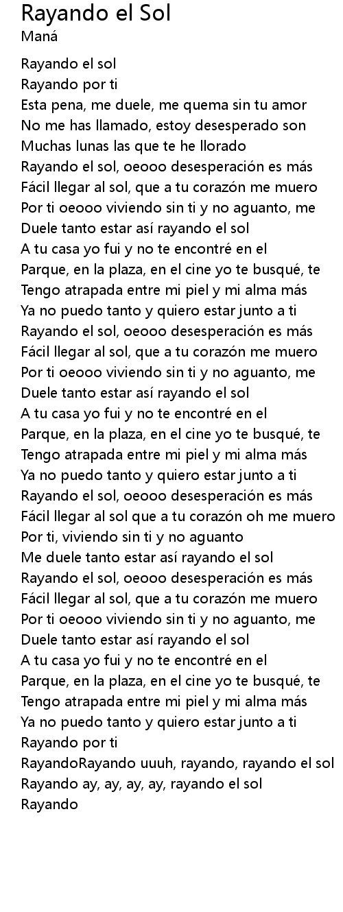 | Rayando ay, ay, ay, ay, rayando el sol | |