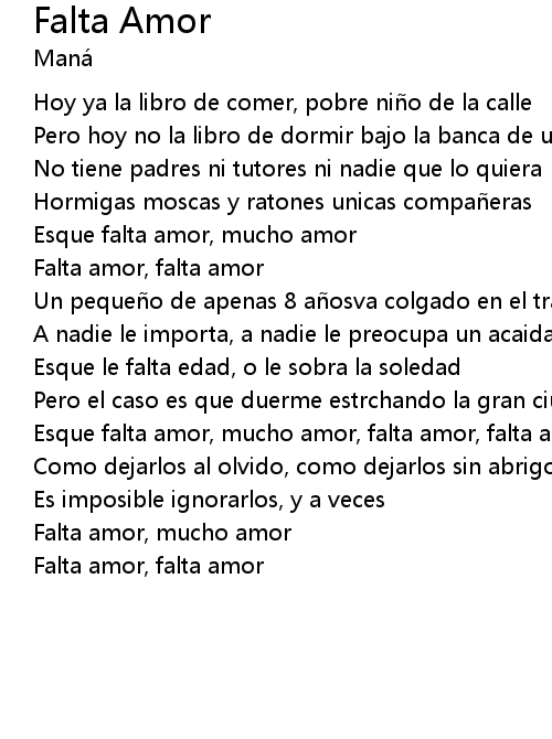 | Esque falta amor, mucho amor, falta amor, falta amor | |