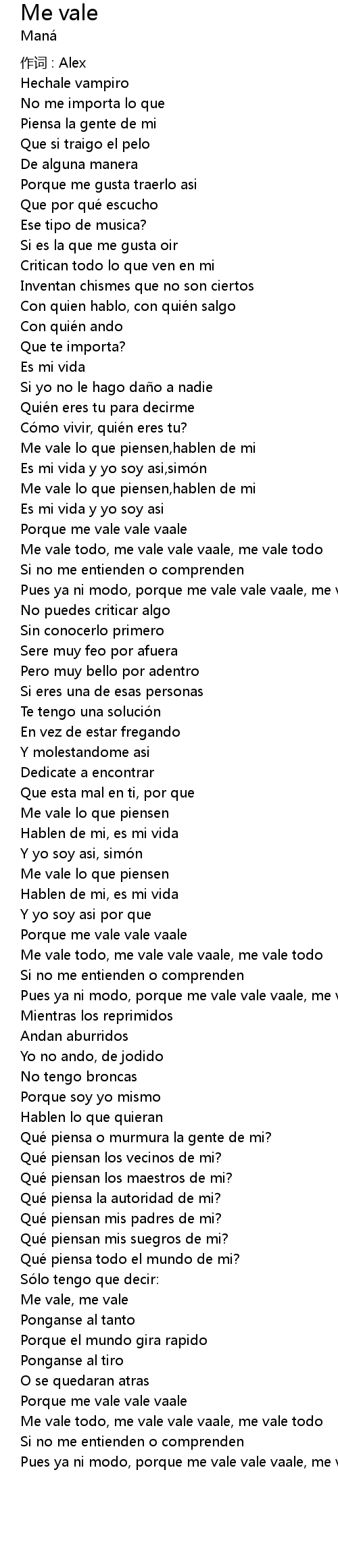 | 歌曲 | Me vale |