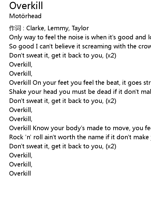 | Overkill On your feet you feel the beat, it goes straight to your spine, | |